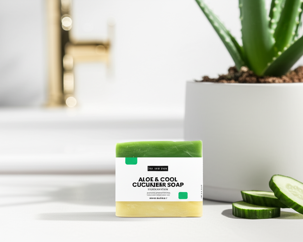 Introducing our Aloe & Cool Cucumber Soap, a refreshing and soothing choice for those with sensitive, delicate, or complicated skin types. This soap is a vital part of any skincare routine, blending the hydrating power of aloe vera with the crisp, refreshing essence of cucumber. Designed to provide a gentle yet effective cleanse, it leaves your skin feeling cool, refreshed, and delicately scented, making every wash a rejuvenating experience.