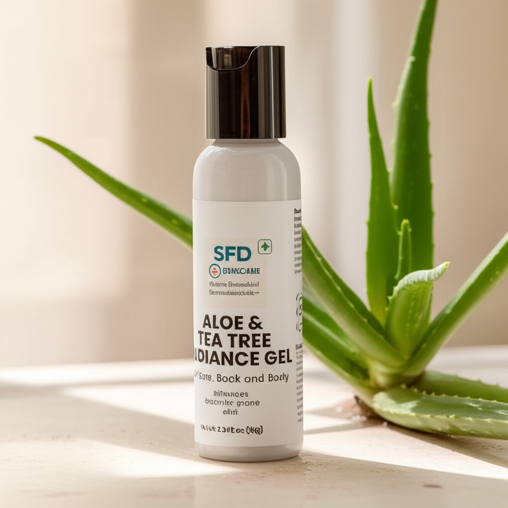 Our Aloe & Tea Tree Radiance Gel helps reduce the visible signs and appearance of redness and blemishes, leaving your skin looking balanced and refreshed.
