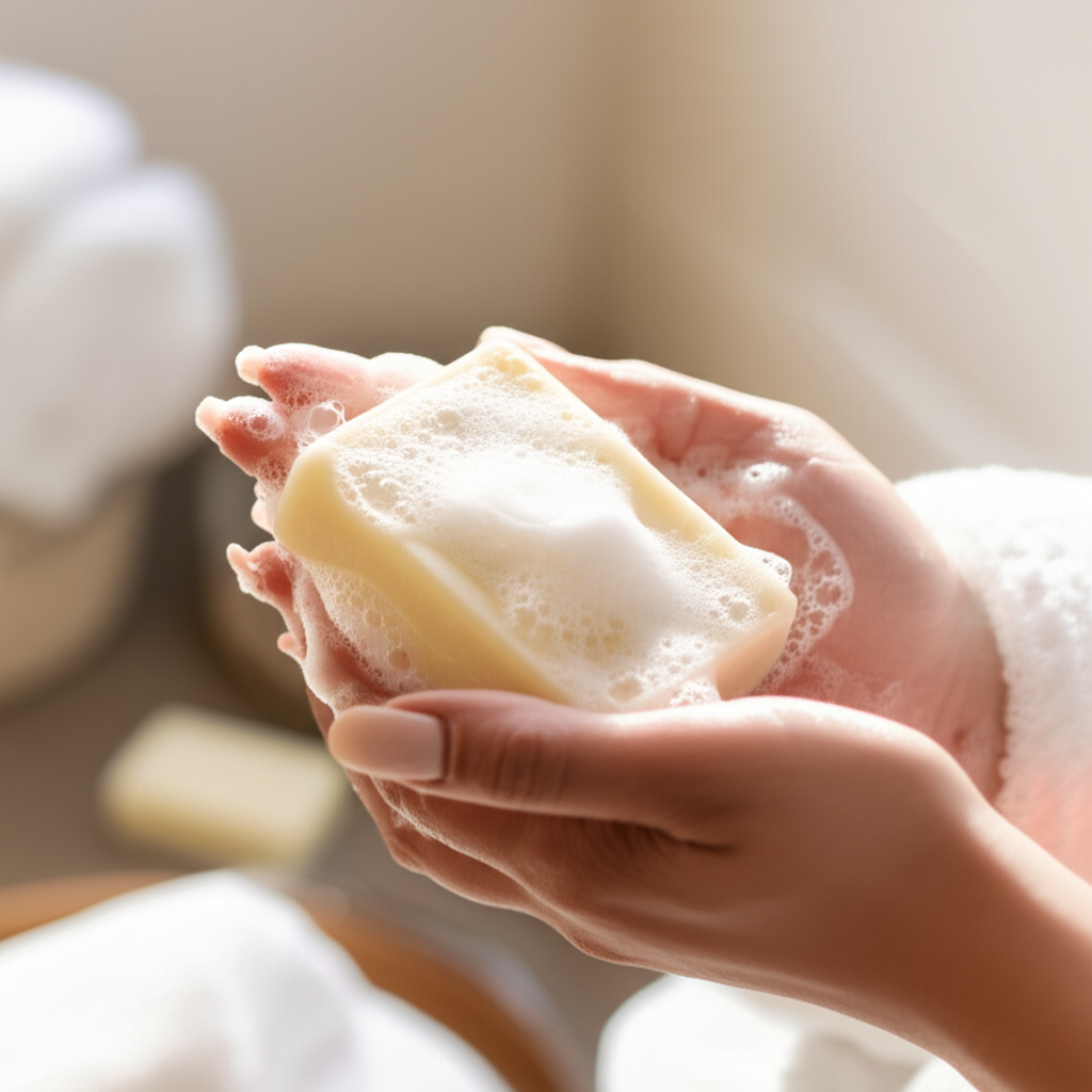 • Soothing for Sensitive Skin: Our soap is specifically designed to provide a gentle cleanse, making it perfect for sensitive skin. It helps maintain the skin's natural moisture barrier, ensuring a soft, nourished feel after every wash.